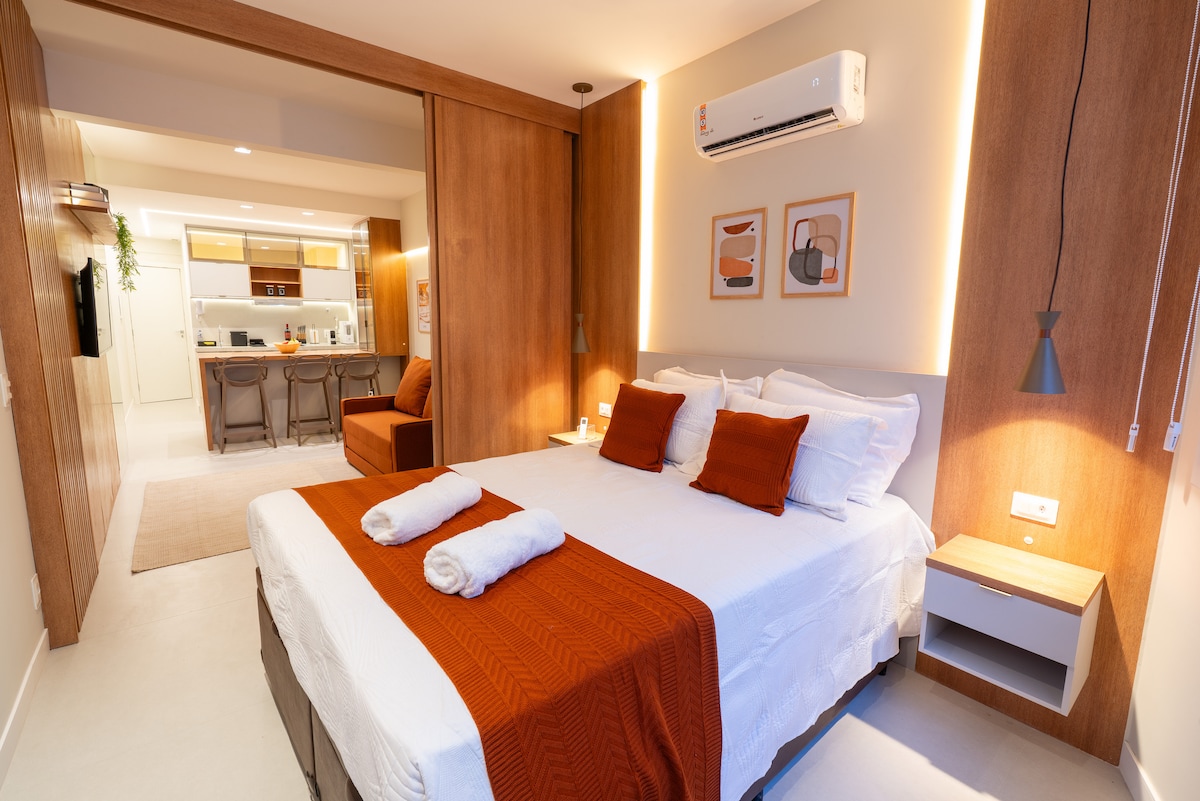 Leia as 4 regras da casa na seção "O que você deve saber" e "Mostrar mais". Destaques: - Limpeza diária do apartamento incluída - Apartamento recém reformado, com mobilia novinha - Infraestrutura do prédio com piscina, sauna, restaurante e academia - Portaria 24h/7d - Fechadura por senha - Smartv de última geração na sala - Wifi de alta velocidade - Acomoda até 3 pessoas, sendo 1 no sofá (sugerido para crianças) - Cozinha completa - Ao lado dos shoppings Leblon e Rio Design - 5m andando praia