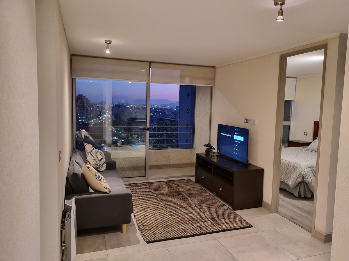Disfruta este invierno en nuestro cálido departamento en Santiago Centro. Perfecto para 3 personas, cerca de todo y con fácil acceso a la Cordillera y centros de esquí. ¡Comodidad total para tu escapada urbana o de montaña! Cocina totalmente equipada, WiFi y Smart TV Seguridad 24/7 en el edificio Ven a disfrutar de la nieve, la ciudad o relajarte, Reserva ahora y vive el invierno en Santiago