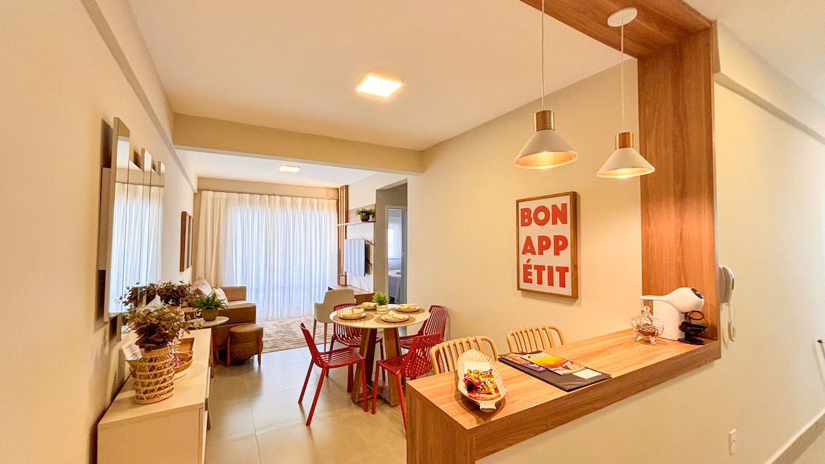 Curta uma excepcional experiência em nosso belíssimo apartamento! Edifício com apenas 2 anos, mobília toda nova e recém instalada. Excelente localização, próximo ao centro comercial e das principais ruas da cidade, em frente a um supermercado. Duas suítes mobiliadas. Fornecemos lençóis, travesseiros, cobertores, edredons e toalhas de ótima qualidade. Ar condicionado em todos os cômodos. Tudo equipado e pensado para você se sentir em casa! Edifício com elevador e ampla vaga de garagem.