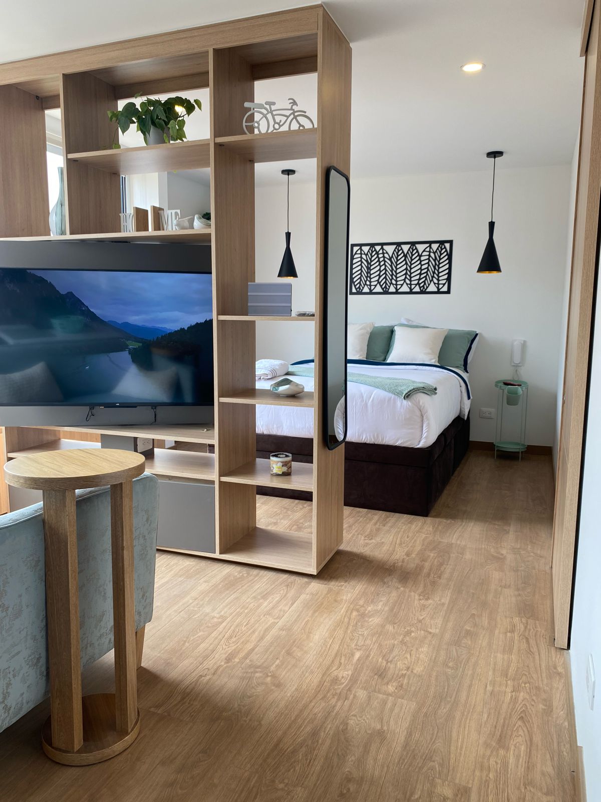Relax in this modern and comfortable loft located in the charming Usaquén, one of the most vibrant areas of Bogotá. Within a few minutes walk, you will find a variety of gourmet restaurants, cafes, and unique boutiques. The room features a queen bed, private bathroom, Wi-Fi, and a workspace ideal for business travelers. Perfect for couples or solo travelers who want to explore authentic Bogotá life in a safe and sophisticated environment. Uroom is exquisite in the details!