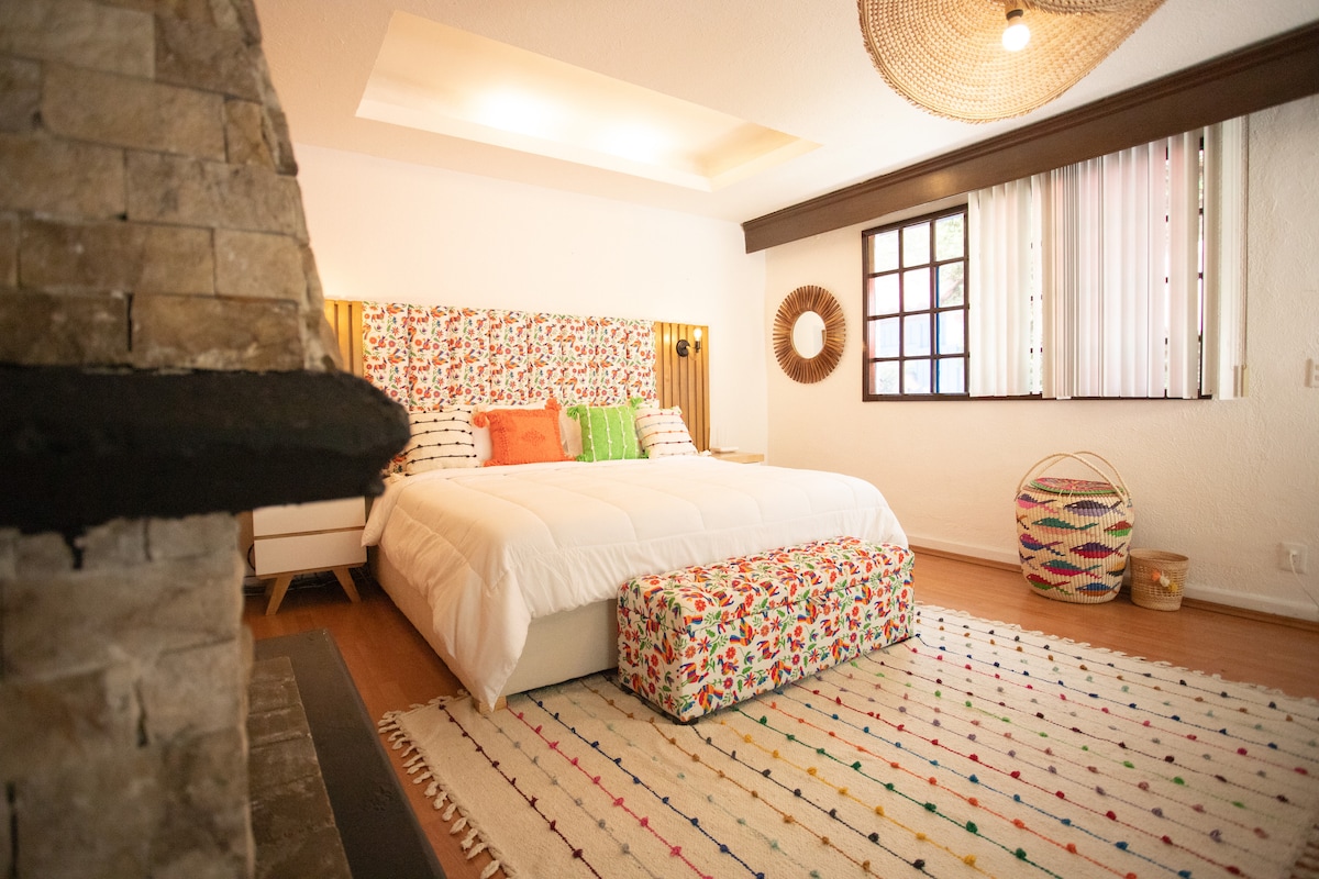 Unbelievable 2 br apartment in a unique building designed by mexican architect Alberto Kalach. Located in La Roma this beautiful apartment has the perfect location to enjoy an incredible trip to Mexico City. You can walk to the best food, shopping and party spots while enjoying and amazing apartment where you can rest.