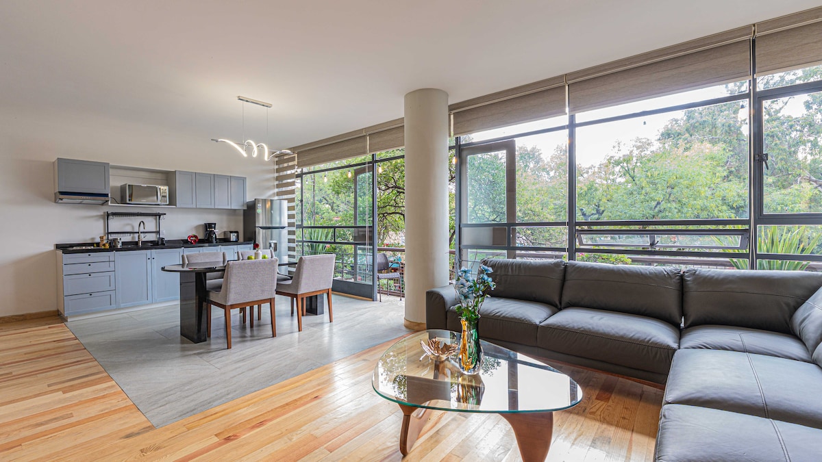 Welcome to THE place of your holidays with an unique design flat at Mexico City. Lively plants throughout, wood flooring and decor, contrasting textures and motifs, an artist custom mural wall at the main heart-terrace, and flowing open living spaces. An open terrace will be the place to relax after a long day in Mexico. The place is full of details + amenities for you. We supervise each property after our cleaning service, this is a very important step for our guests.