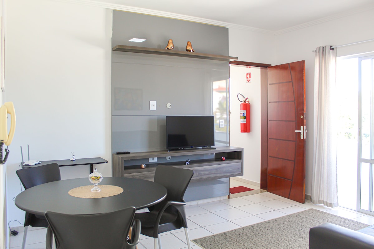 Ideal para 2 pessoas , se necessário temos um colchão para dormir na sala (consulte nos a disponibilidade do colchão) Apartamento Studio ideal para casal ,para quem procura um apartamento perto do shopping, no Bairro do Campolim - Apartamento completo com jogo de cozinha - Jogo de cama completo - Chuveiro a gás com jato forte e quente - Wi-Fi (5G) ótimo para Home office - Bancada para Home Office