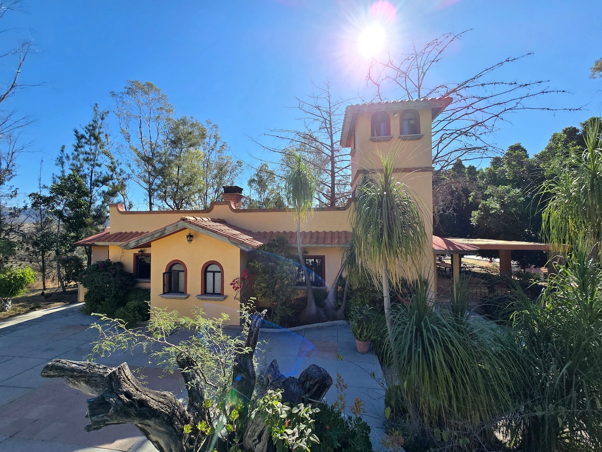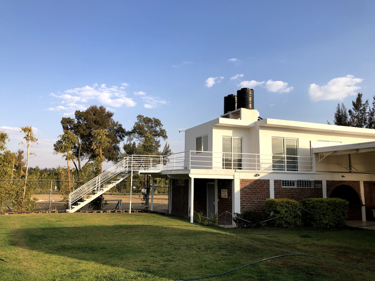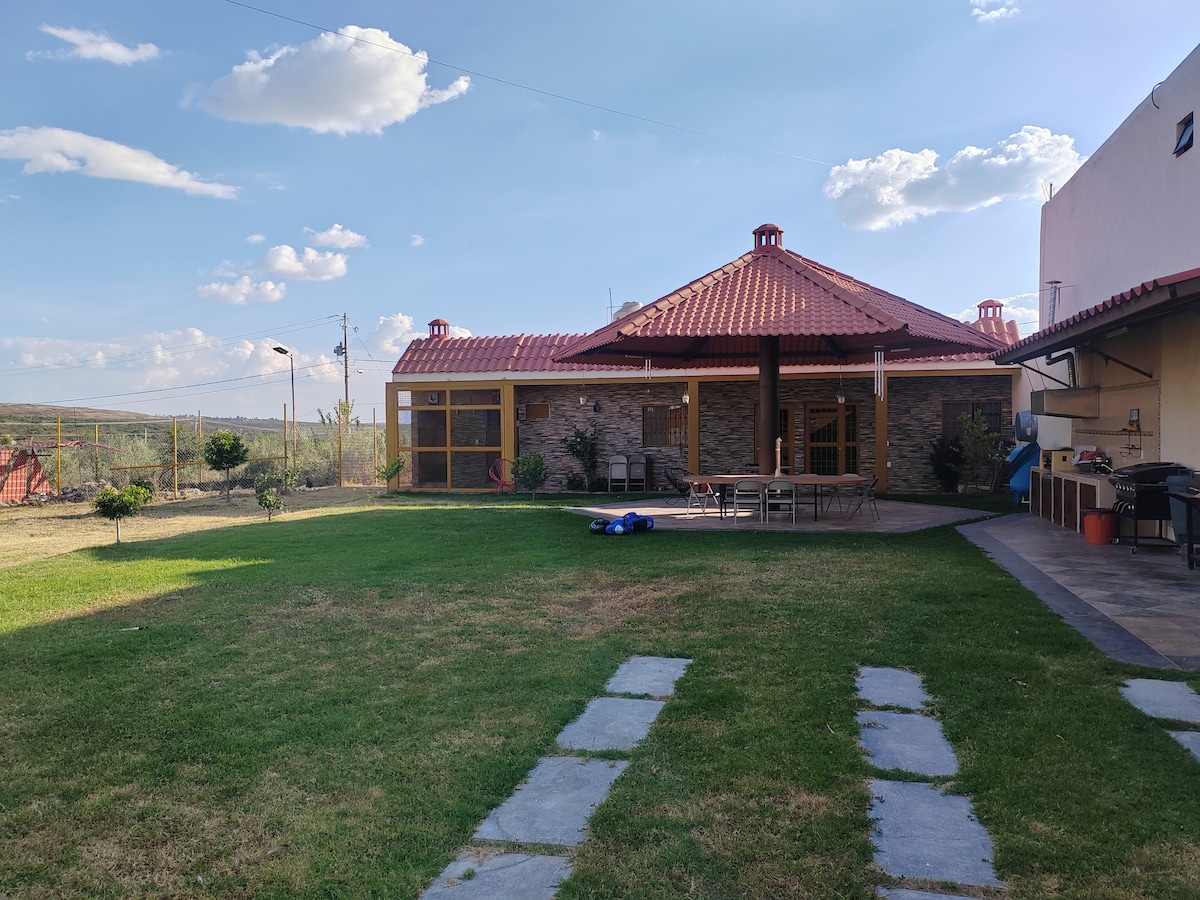Amplia casa ajardinada, con todas las comodidades para una excelente estancia. La planta baja es de amenidades; cancha de futbol, asador, palapa, baños, regaderas, vestidores, alberca, vapor, temazcal, jardines y acceso para vehículos. En la planta alta encontraras el área de descanso con amplias habitaciones, baños, sala comedor y cocineta completamente equipadas, con una espectacular vista a las áreas verdes que la rodean. Sin ir tan lejos de la ciudad, seguro lo disfrutarás. ¡Te esperamos!