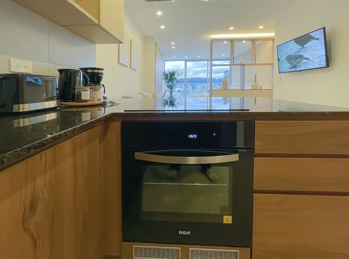 Modern style ... kitchen appliances, automatic blackout curtains, de luxe interiors. Very confortable. 503 is thought for client with exceptional tastes for an affordable price. It has everything you may need .. for short or long stays. With a unique location that helps you to stay very close to main places in Quito. Shopping, Dinner, exercise, sports. Etc. You I’ll love it .!