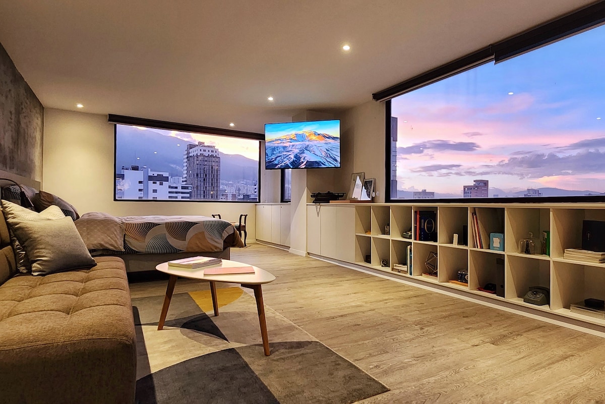 Enjoy a luxury experience at this central accommodation. Designed for an exclusive stay in the heart of Quito, Ecuador, this spacious and cozy place offers all the amenities needed to make you feel at home. Ideal for families and executives, this luxury building stands out for its prime location, just a 5-minute walk from restaurants, cafes, pharmacies, supermarkets, and shopping centers, near La Carolina Park. Welcome to Bleisure Hosting!