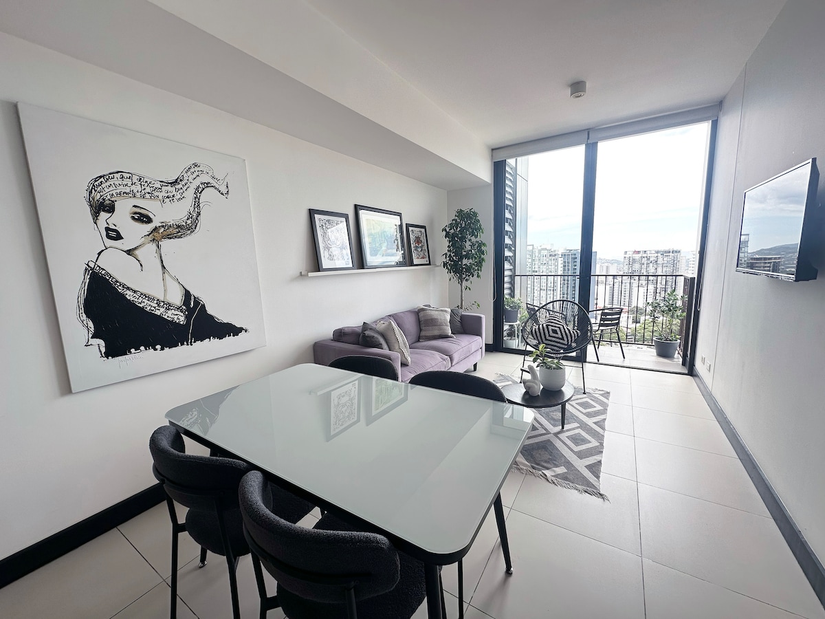 Vive la experiencia de hospedarte en un edificio único de 32 pisos a solamente 200 metros del Parque Metropolitano de la Sabana (mejor ubicación en San José) disfrutarás de sus más de 20 amenidades, las vistas panorámicas de San Jose y sus montañas y te vas a cautivar por los detalles decorativos que verás en cada rincón. ***Aeropuerto Juan Santamaria a solamente 10 millas***