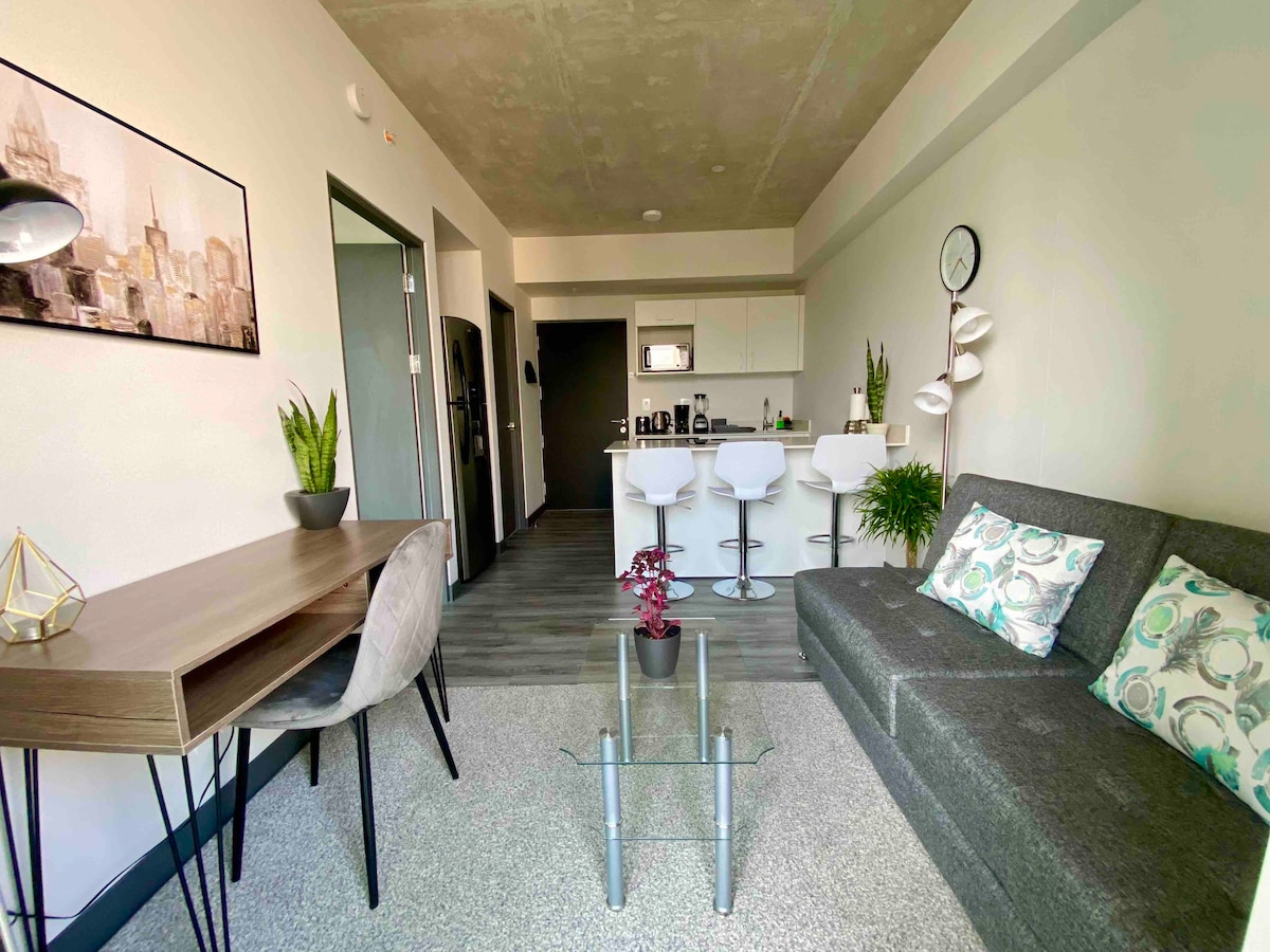 Beautiful apartment in exceptional building with ideal location. Experience all the amenities at the most popular building in the area. List of amenities: Pool Lobby 24/7 Bar Pet Park Laundry *Extra fees Cinema Playground 3 level gym Themed Rooms Rooftop terrace with amazing views Your apartment: Fully furnished Queen Bed Sofa bed Full bathroom Fully equipped kitchen Living area Breakfast bar Balcony AC Parking in NOT included but available *Extra fees, please inquire NO SMOKING, NO PARTIES