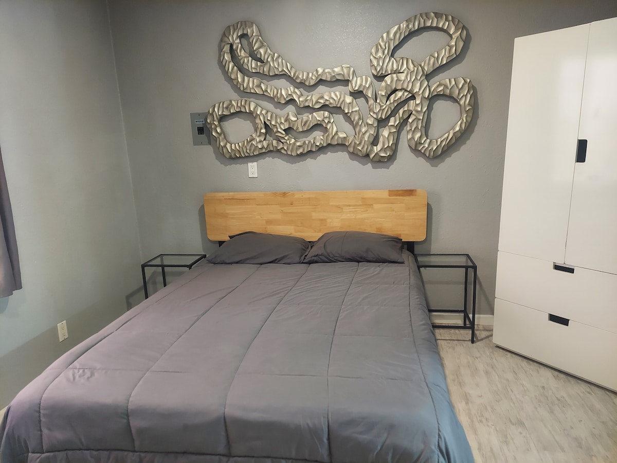 Relájate en este espacio tan tranquilo y elegante. Con todos los servicios privados como cocina, sala, recamara, baño, lavadora y secadora independientes, entrada privada, ya instalados pueden llegar a cualquier horario, se aceptan visitas, está pequeño pero muy muy cómodo y limpio, a 15 minutos del aeropuerto y 20 a las garitas a USA, a 5 minutos de plazas comerciales, cómo Macroplaza, Monarca, Museo del Trompo, Parque Morelos y zona de restaurantes. Ambiente familiar, No sé renta como motel☺️.