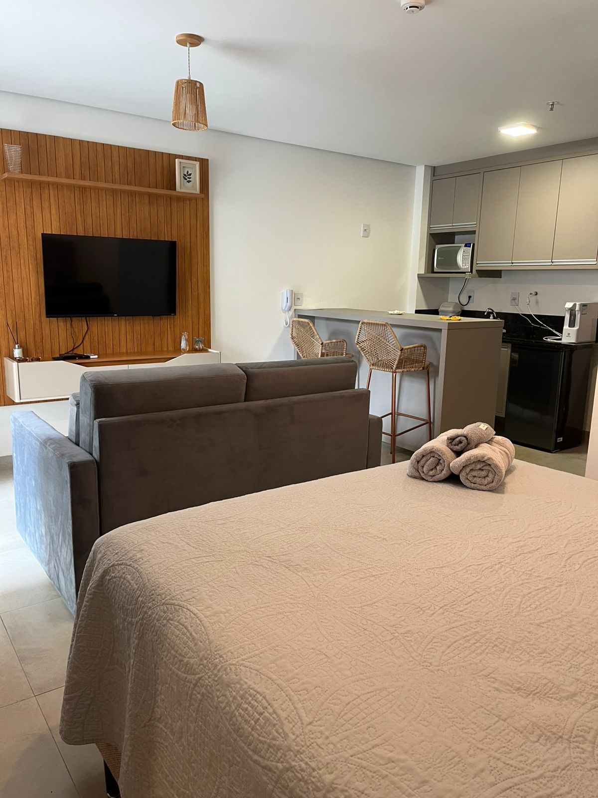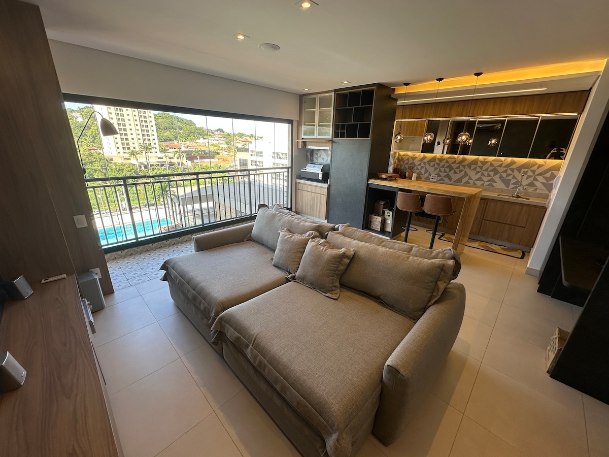 ✨ Seu refúgio de conforto e sofisticação! ✨ Hospede-se neste apartamento luxuoso e completo, perfeito para quem busca comodidade e bem-estar. ✔️ Ambiente moderno: cozinha equipada, sala aconchegante, quarto confortável e banheiro elegante. ✔️ Conectividade e lazer: Wi-Fi grátis, Netflix (use sua conta), piscina aquecida, academia, sauna e salão de jogos. ✔️ Conveniência: mesa para refeições, 1 vaga coberta e roupas de cama e banho. ✔️ Check in rápido