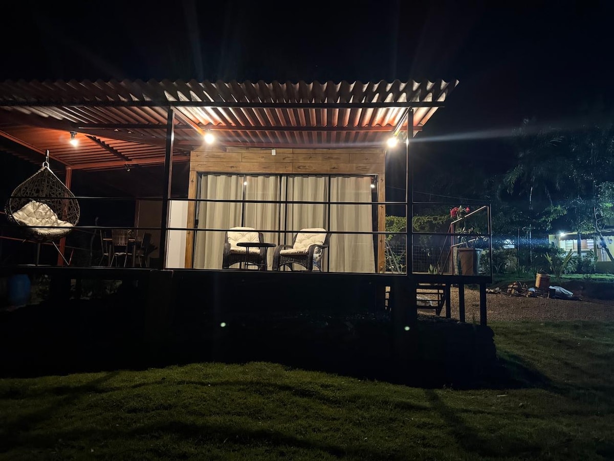 Estrutura rústica e aconchegante, a cabana VeraVista te convida ao movimento e ao descanso. Cama queensize e colchão de molas, uma janela com vista para serra da Baliza, e um banheiro de tirar o fôlego, com banheira de hidromassagem e teto de vidro para apreciar o céu. Além de um telhado vivo, ducha e uma vista panorâmica da cidade.