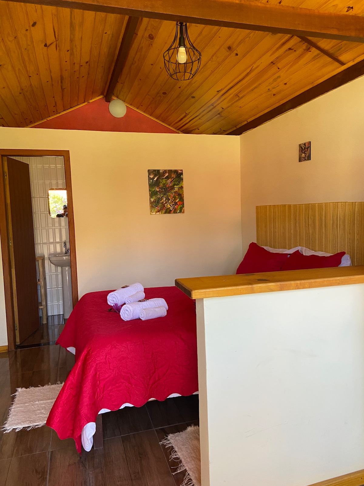 Chalés confortáveis, aconchegantes e muito simpáticos. Um cantinho especial para relaxar depois dos dias de passeio pela região. Os chalés possuem cama de casal, lareira, frigobar, TV, ventilador e banheiro box com aquecimento a gás e torneiras quentes.