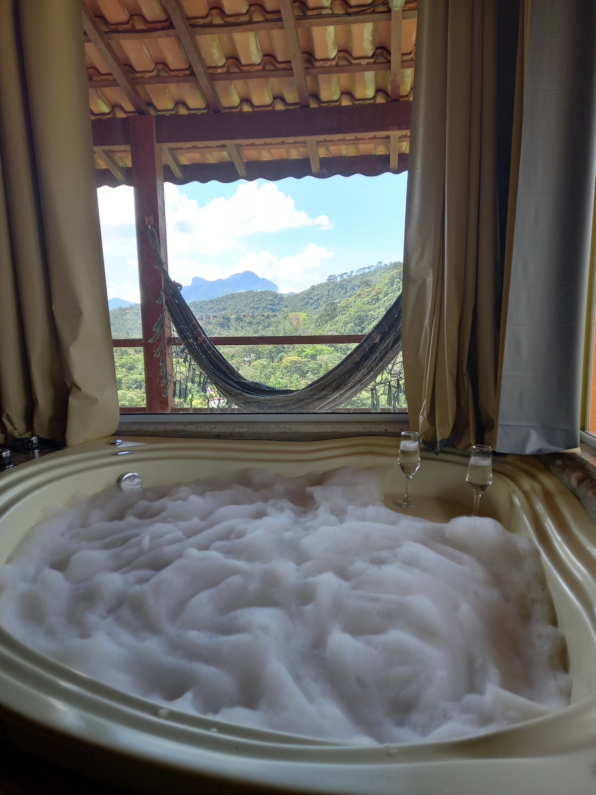 A Casa fica localizada em Visconde de Máua, possui 2 quartos, 1 banheiro, 1 espaço com hidromassagem e chuveiro, sala ampla e cozinha toda equipada, varanda com rede e deck com mesa. Ao redor temos uma super rede para tirar foto com vista para montanha, além de espaço com churrasqueira. Leve toda a família a este ótimo lugar com muito espaço para se divertir. Caso queira ver mais fotos e vídeos, podem conferir aqui nas redes: chale_dare