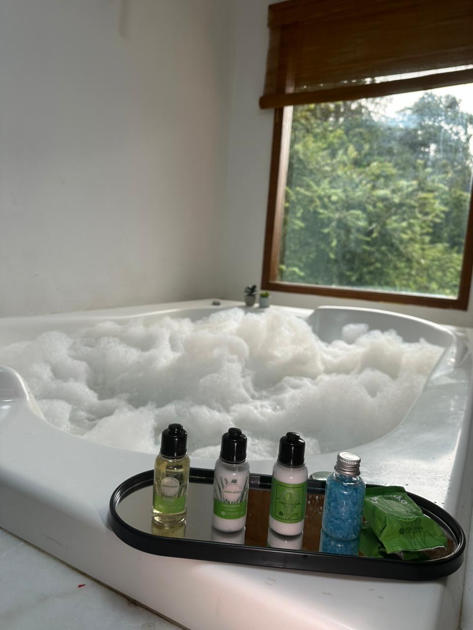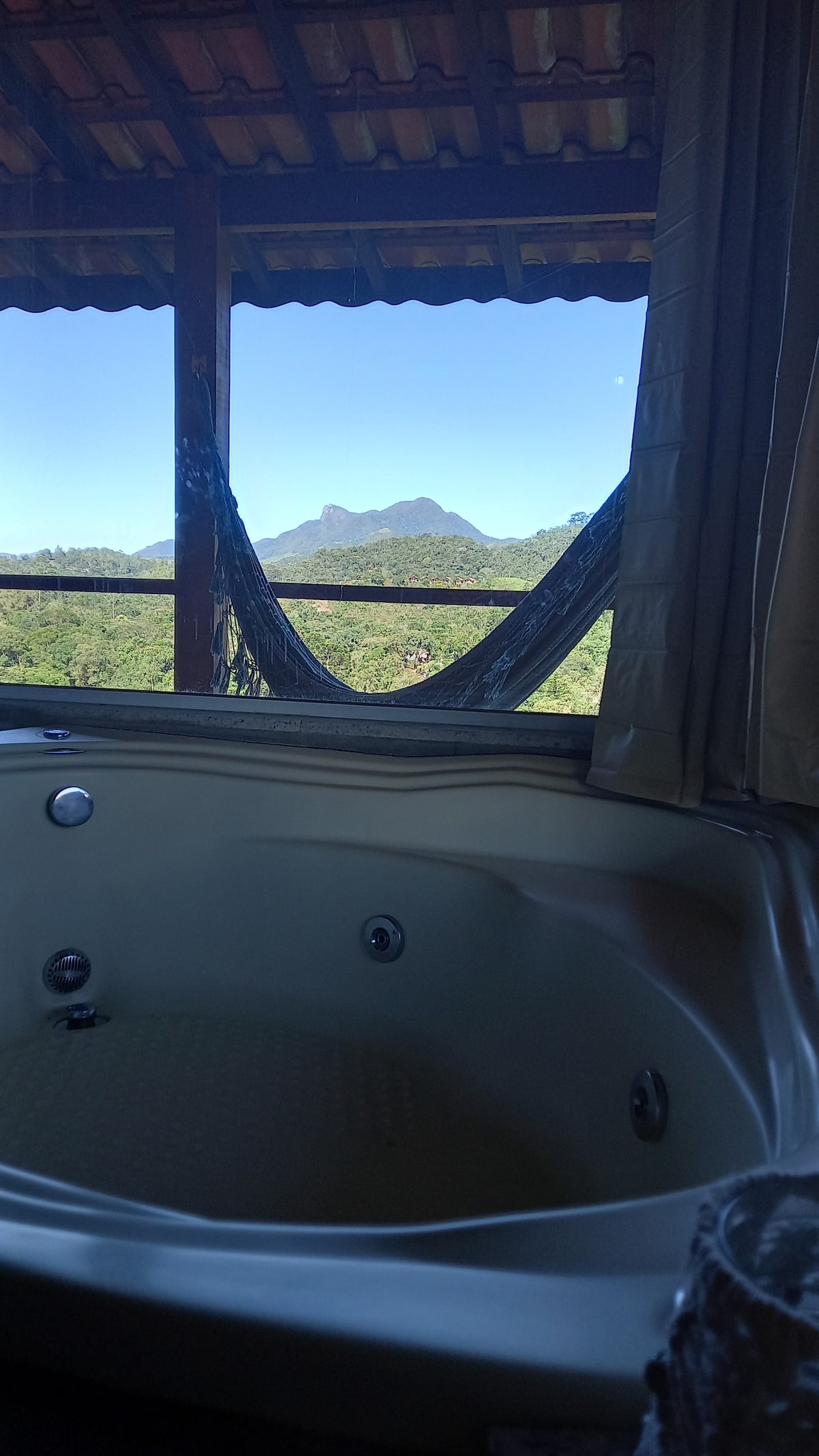 Relaxe neste lugar único e tranquilo. Conexão com a natureza sem perder o conforto. Chalé com banheira de hidromassagem, cozinha, lareira e muito aconchego. Área externa com chuveiro e espreguiçadeiras. Piscina e mirante na propriedade com vista para Serra da Mantiqueira.