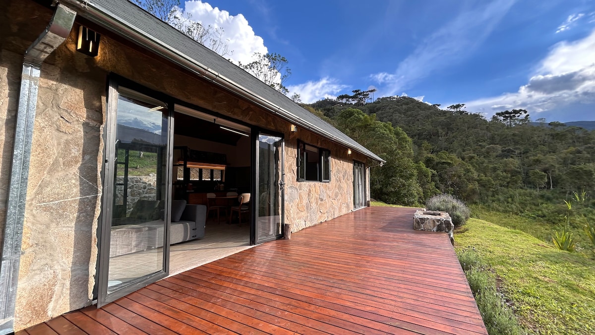 Longe do enxame de turistas, este refúgio Serra da Mantiqueira fica perto de varias atrações mais escondidas de Visconde de Mauá, cachoeira a 25 minutos A PÉ, supermercado 10m. Decorado e bem equipado, pode cozinhar no fogão a lenha típico da região ou a praticidade do cooktop. Aquecedores elétricos, lareira ecológica. Relaxar na rede, praticar yoga. Na Ponte dos Cachorros, seguindo da Vila de Mauá 4,5 kms direção Campo Alegre, Pedra Selada, Rio Preto em rodovia asfaltada. INTERNET,SMART,CABO.