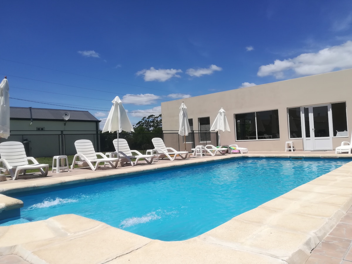 Relájate, Respira, Disfruta. Escapa del bullicio y sumérgete en un entorno de paz y armonía, rodeado por la naturaleza y el silencio. Nuestro amplio parque verde y la piscina te ofrecen el espacio perfecto para relajarte y disfrutar de una estancia tranquila y cómoda. Ubicada en las afueras de Colón, cerca de la Ruta 135, nuestra cabaña es el refugio ideal para quienes viajan en auto y buscan un lugar apartado y accesible. Parque y pileta compartidos ( 6 personas máximo). Toallas no incluidas.