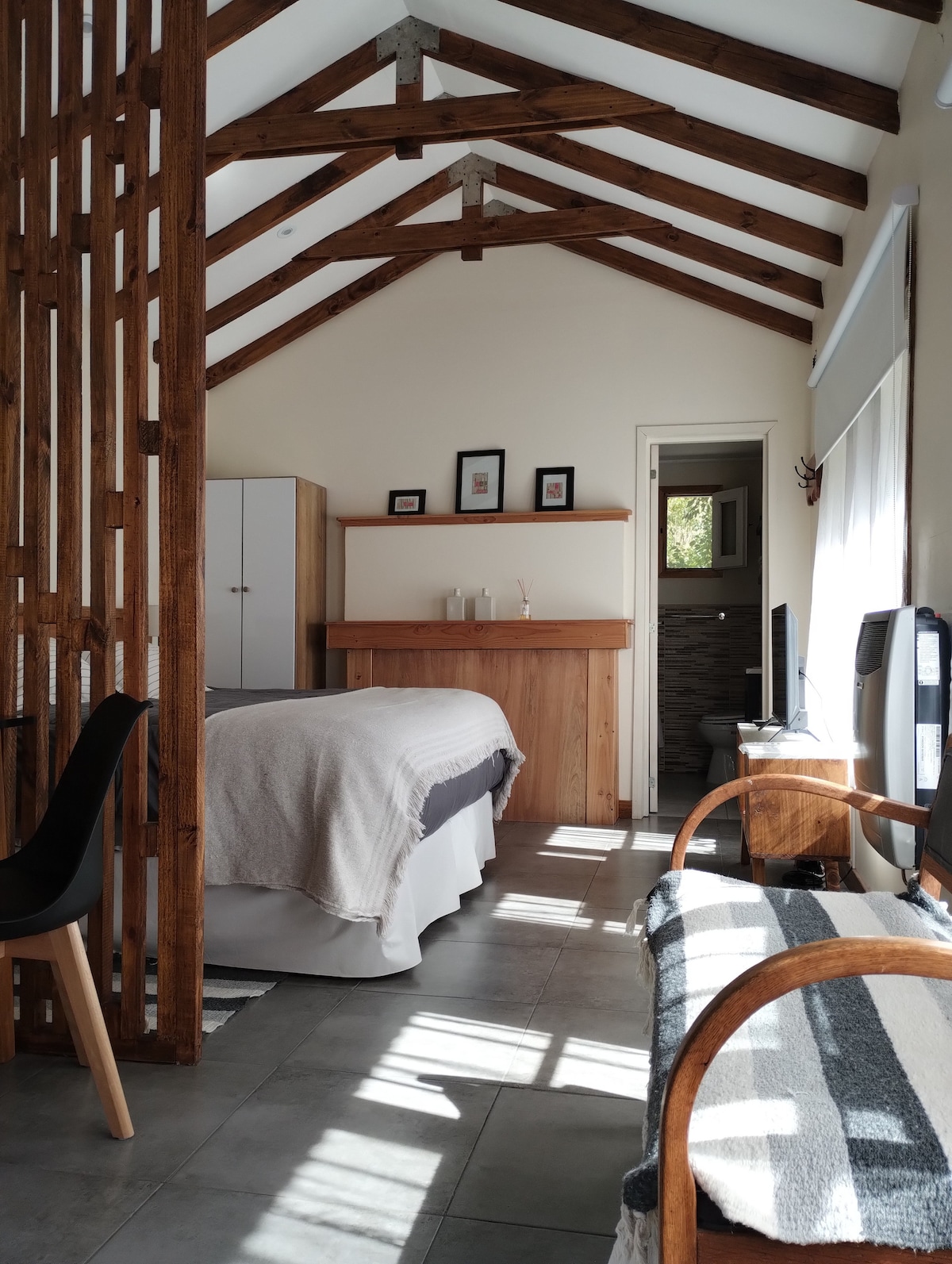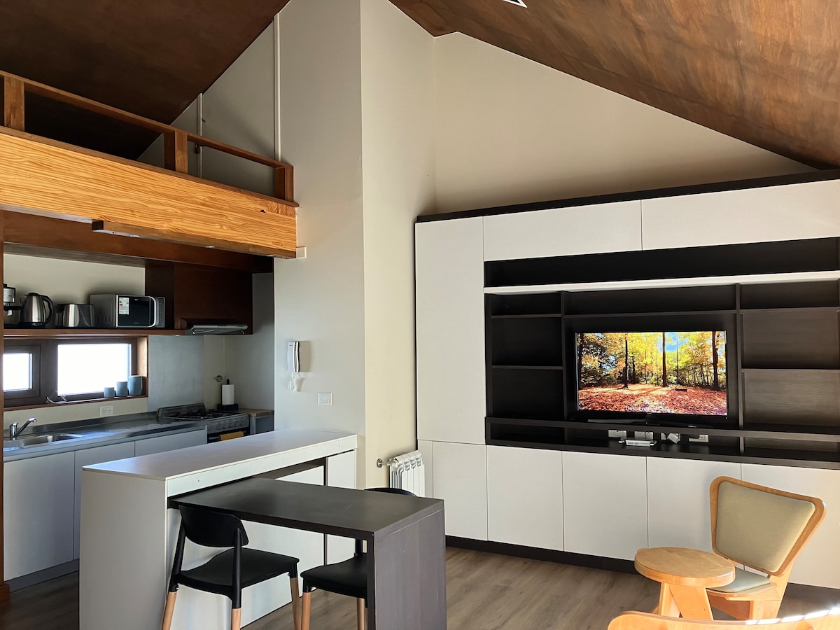 Moderno Monoambiente en el centro de San Martin de los Andes. Totalmente equipado con equipamiento de cocina, toallas, ropa de cama y todo lo necesario para disfrutar de tu estadia. El dpto esta ubicado a 2 cuadras del sector comercial por lo que permite tener total tranquilidad pero estar facil y rápidamente en el sector de restaurantes, negocios y supermercados. Eventualmente, en el dpto. puede ubicarse una tercera cama en un sector superior para un niño/a, que se evalua en cada caso.