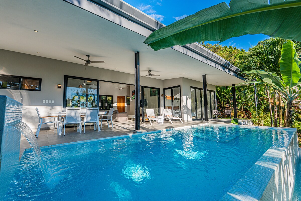 Birds of Paradise houses are a peaceful, family-friendly, modern, fully equipped, surrounded by nature, on a secure and private property. We offer a shared pool, natural gardens, WiFi, parking space for 2 cars maximum, and more than 60 amenities. There are delicious restaurants, shops, supermarkets, drugstores, car rentals, bike and surf board rentals, banks, tourist attractions, and a lot more, all in a walking distance.