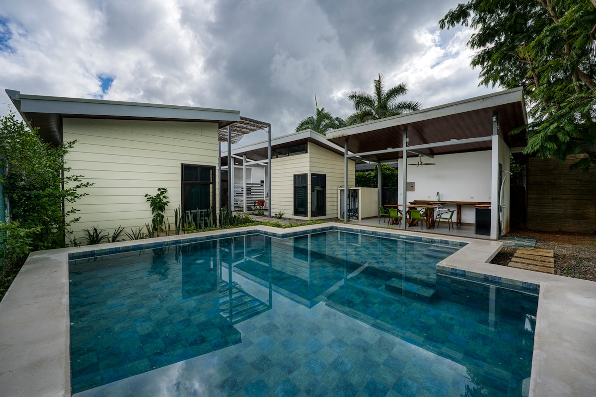 Open-concept villa equipped with all the comforts of home; fully stocked kitchen, smart TV, BBQ, plunge pool, fiber internet, and a private terrace/backyard. End a perfect day by sinking into the luxurious King bed, raved by guests as the comfiest bed in town. No 4X4 needed. Walking distance to shops, restaurants, banks, grocery stores, a short drive to Marino Ballena National Park and the most beautiful beaches! PLEASE no children/babies permitted.