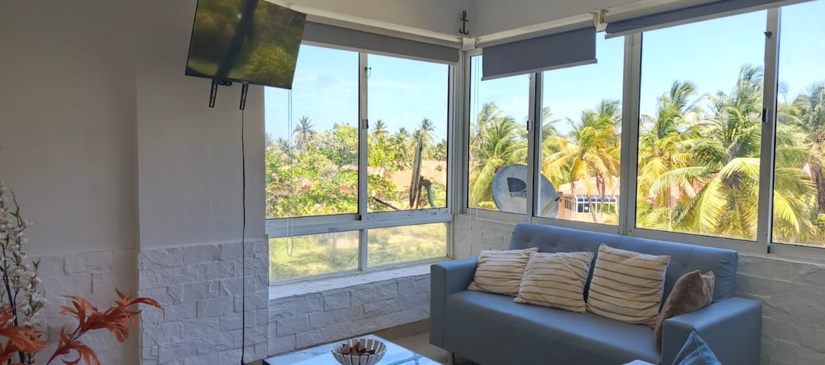 No Airbnb Fees: What You See Is What You Pay! 🌊 Relax with ocean views! Enjoy 2 bedrooms: one with a king-size bed and other with a bunk bed and a pullout single bed. The space features 2 bathrooms with hot water, an equipped kitchen, Wi-Fi, TV, and 3 air conditioners. The gated community includes a swimming pool, BBQ areas, direct beach access, and private parking. Safe and secure, with a power generator available on weekends and holidays. 📅 Book now and enjoy an unforgettable getaway! 💙