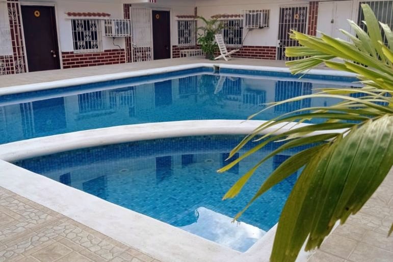 This listing is for a 5 person suite inside the Villa Marina Hotel; a welcoming, friendly, and cozy Hotel; located 1 block from shore, in the beautiful Morrocoy National Park in Chichiriviche, Falcón. Our staff provides excellent customer service, and supervise our rooms, able to lodge 2 to 6 guests. The amazing pools invite guests to swim and relax, while our restaurant, bar, mini market, and power plant provide what you need to make your stay enjoyable, homey and unforgettable.