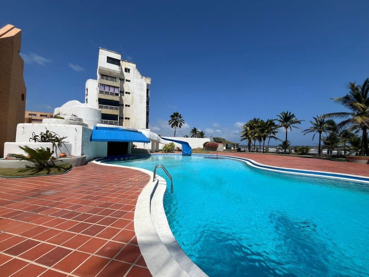 Un alojamiento GoUppers. ¡Sin comisiones de Airbnb: lo que ves es lo que pagas! Tu rincón costero en Tucacas! Este luminoso apartamento para 6 personas te brinda una ubicación inmejorable con impresionantes vistas al mar. Con 2 habitaciones y 2 baños dentro de un edificio renovado; terraza y piscina frente al mar, es el balance perfecto entre comodidad, diversión y proximidad a los cayos. Ideal para familias que buscan explorar el Parque Nacional Morrocoy. ¡Vive una experiencia única en Falcón!