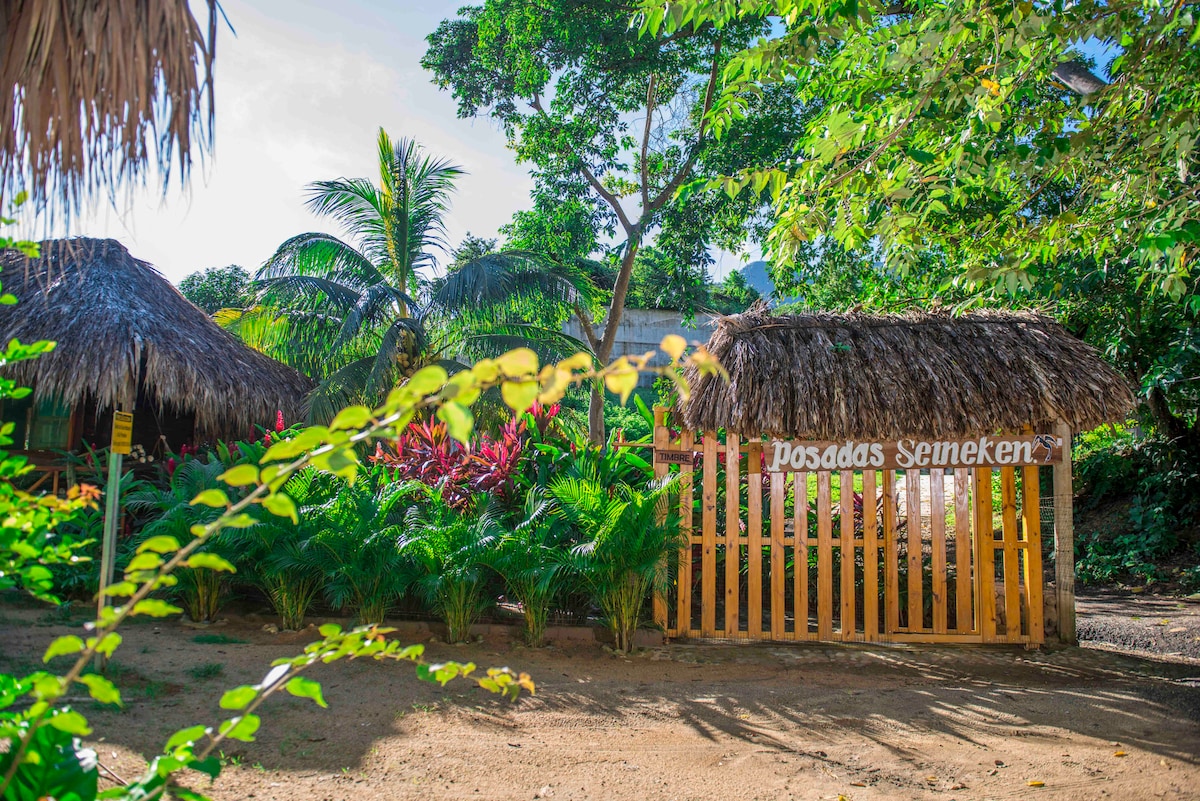 "queda caminando a 5 minutos de la entrada al Parque Natural Tayrona , estamos a unos 100 mts sobre la carretera principal lo que facilita el transporte a diferentes lugares, su paisaje es hermoso. Te va a encantar mi lugar debido a La excelente atención que tendrán de nuestra parte, las habitación es confortable, su paisaje y las áreas comunes que tiene Posada Seineken. Mi alojamiento es bueno para parejas, intima y construida ecológicamente de madera y palma muy cerca queda Rio Piedras.