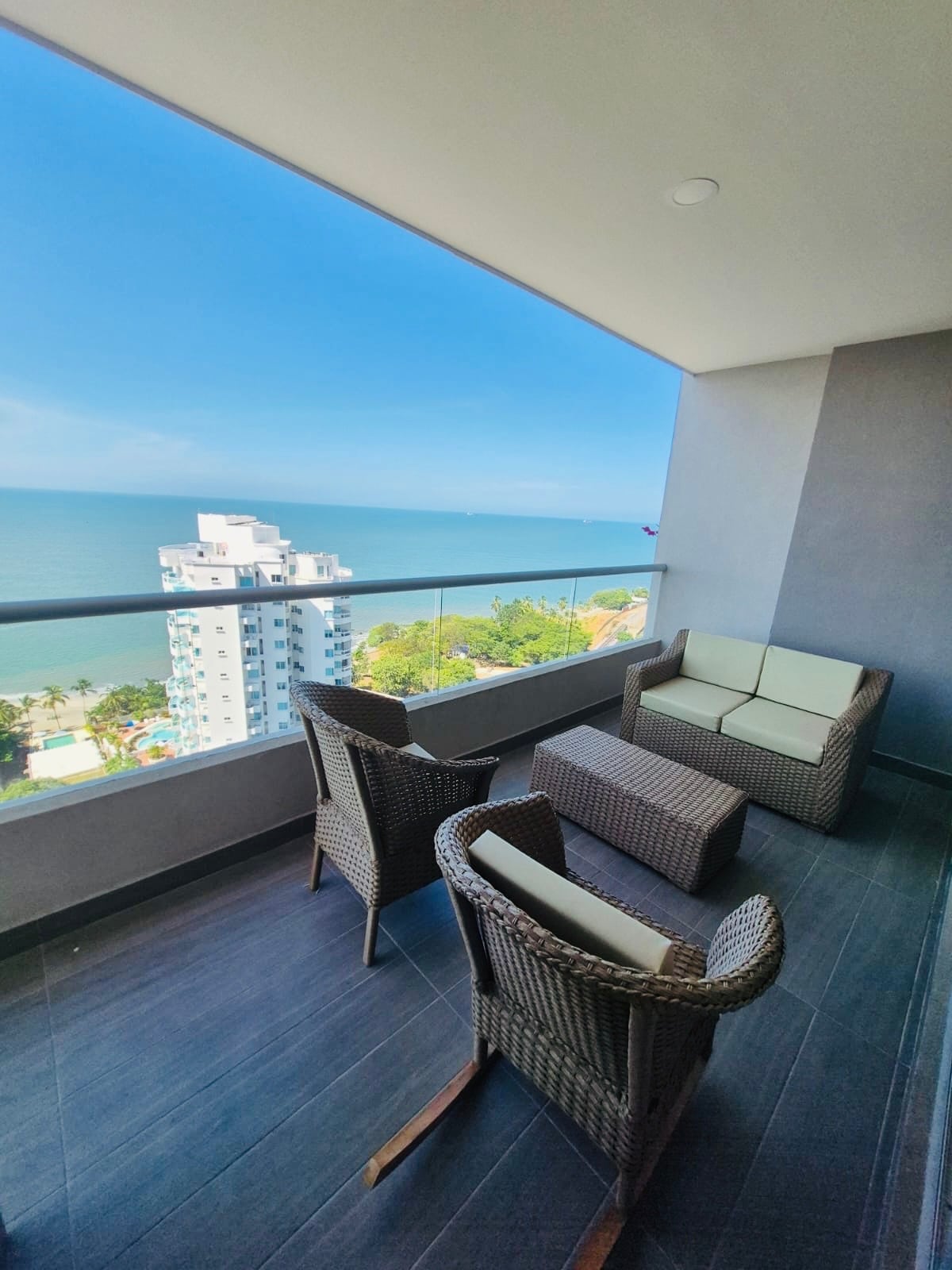Stay at Samaria Club de Playa, an exclusive beachfront community in Santa Marta known for its tranquility and resort-style amenities. This bright and comfortable apartment is designed for a relaxing stay and features a private balcony with a pleasant lateral ocean view. Highlights 👉 Beachfront building with private beach access 👉 Multiple pools, including an infinity pool 👉 Gym and jacuzzi 👉 Private balcony with lateral ocean view 👉High-speed Wi-Fi 👉 Elevators and parking