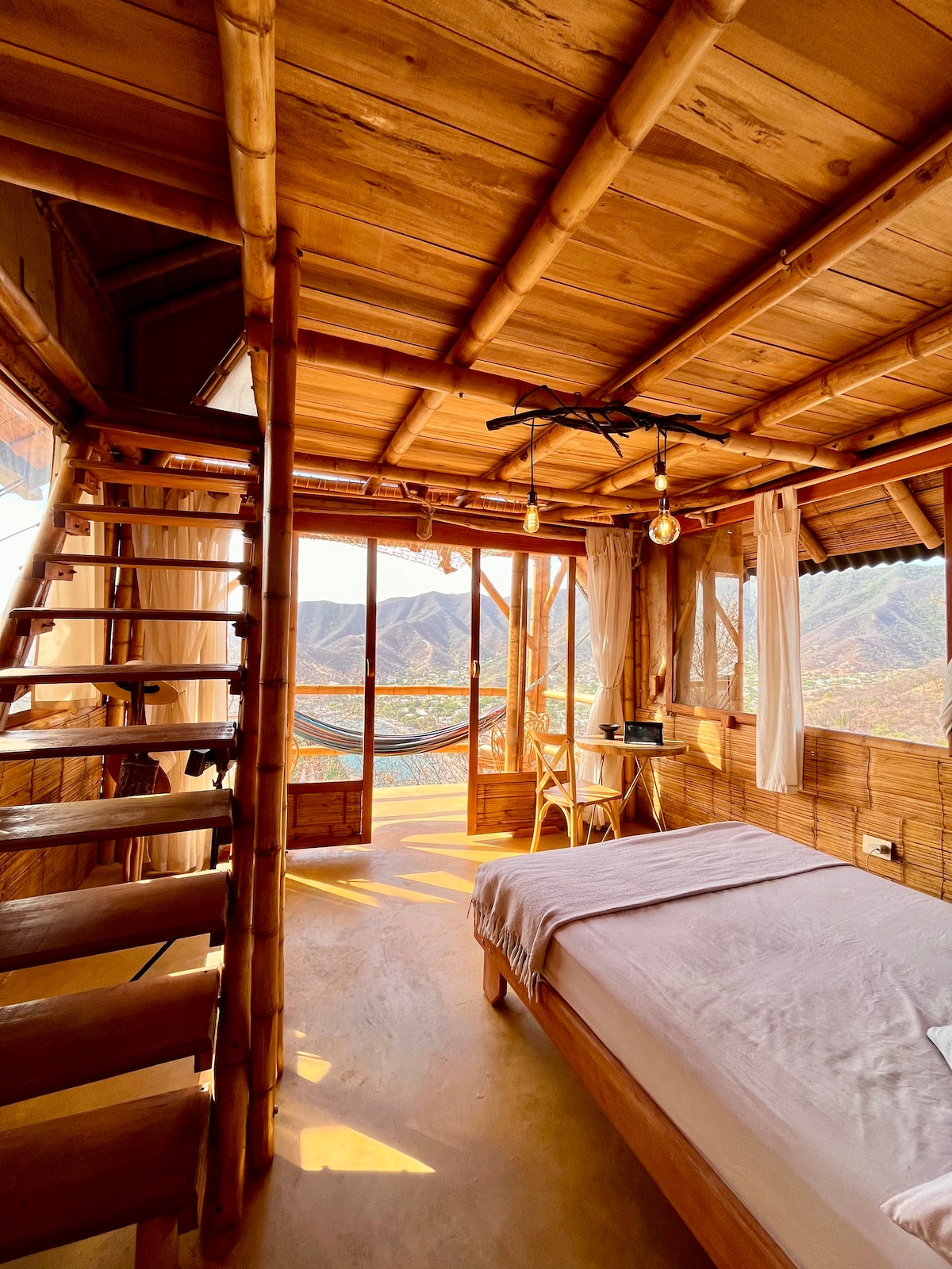 En medio de la montaña, rodeada de selva y con vista al Mar Caribe se encuentra nuestra cabaña privada a cuatro minutos en transporte a la entrada del parque Tayrona. En ella podrás disfrutar de impresionantes vistas al océano, la selva y las montañas. Es ideal para parejas o grupos de 3-4 personas que buscan un lugar tranquilo con todas las comodidades o una escapada aventurera a las hermosas playas, cascadas y ríos cerca de la zona.