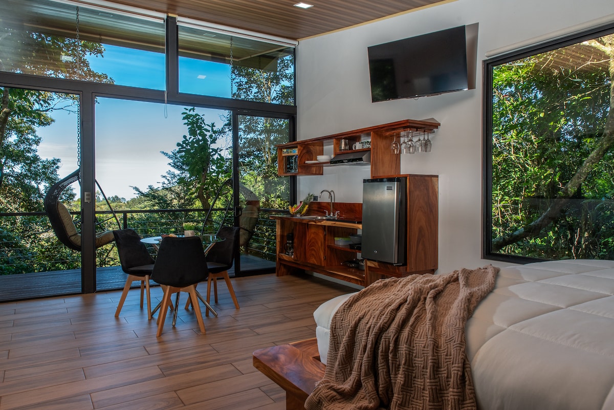 Voted one of the Top 10 Airbnbs in Costa Rica by Forbes and Afar! This modern timber-frame cottage with sleek design and mid-century touches is sure to enchant. Immersed in the Monteverde cloud forest, you’ll feel secluded yet only minutes from Hotel Belmar and major conveniences. Floor-to-ceiling windows fill the space with natural light and open to Pacific Ocean views. A private terrace, freestanding tub, fast Wi-Fi and modern appliances complete the experience