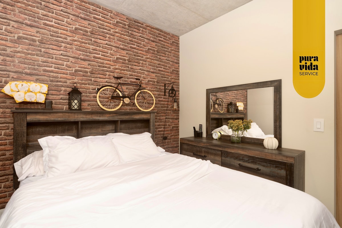 We welcome you to your new and luxurious apartment in the center of the city, located in one of the most iconic residential buildings in the country, with a variety of amenities and just a 5-minute walk away from the most famous gastronomic area of ​​San José. The neighborhood is safe, and has different areas according to your preference (whether it's a night out, or a quiet afternoon in the park). A/C, WiFi 500 mbps, and parking included.