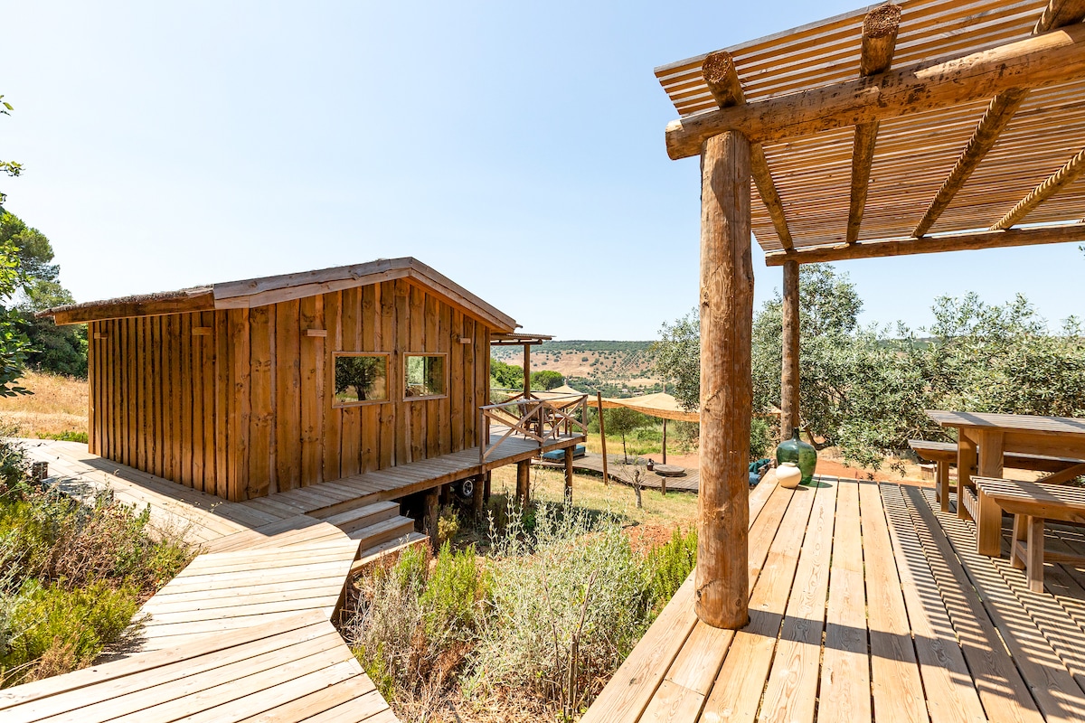 Escape to Sopro da Mata, a private wooden cabin nestled in a peaceful eucalyptus forest near Sesimbra. Wake up to the scent of eucalyptus, filtered sunlight through the trees, and the gentle sounds of nature. This secluded retreat is perfect for nature lovers seeking calm, privacy, and a true connection to the outdoors. Designed for simplicity and comfort, Sopro da Mata invites you to slow down, breathe deeply, and enjoy Portugal at its most authentic.