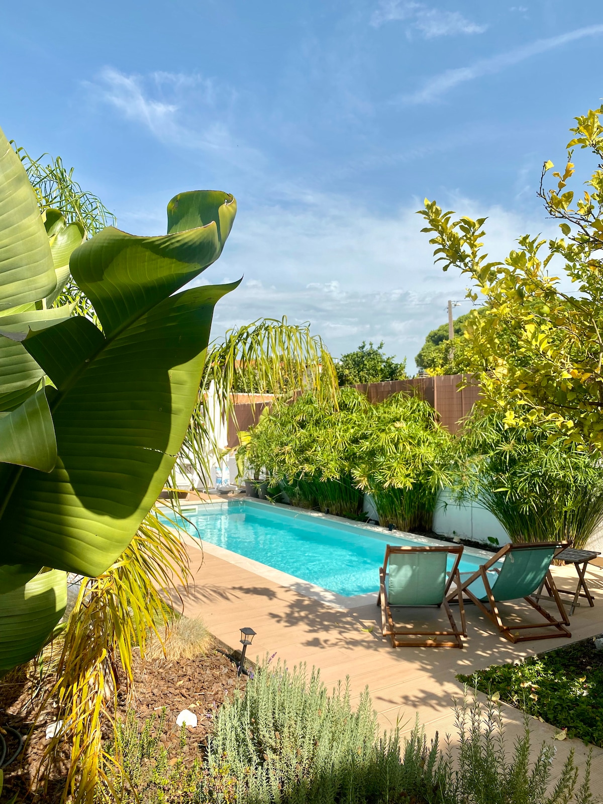 The Pool Pavilion is a cosy and relaxed two suites and kitchen space that overlooks a lush garden and is the ideal choice for a joyful and relaxing getaway. Appointed to a high standard with simple yet sophisticated materials, such as micro cement flooring , stucco walls and linen curtains, and decorated in soothing natural colours, it blends harmoniously with its surroundings. Large patio doors lead out onto a spacious, private garden with wood decking, a heated pool, sun loungers and table.