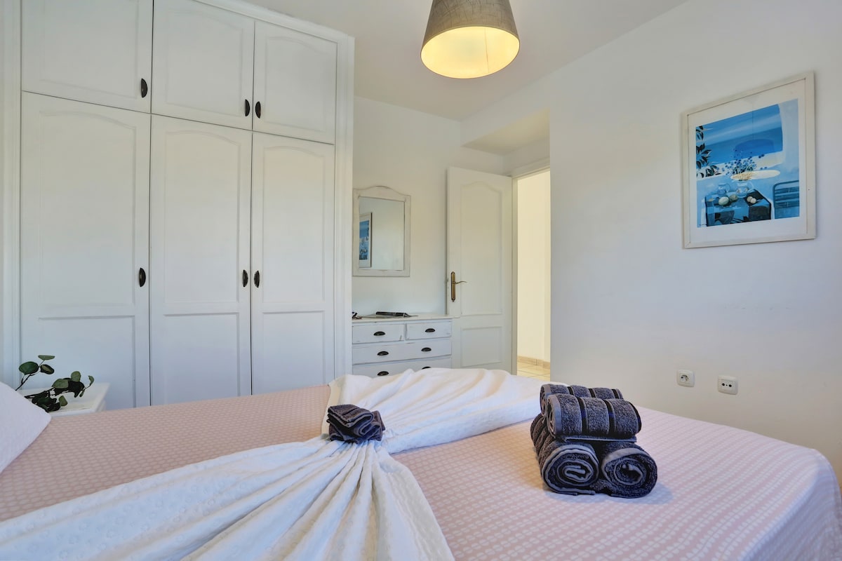 An oasis of tranquility right in the centre of Corralejo! This lovely and well decorated 2 bedroom apartment is ideally situated. From the spacious terrace you can enjoy the view of the massive pool, the lush garden and the sea! The apartment is situated 100 meters from the nearest beach. Right opposite the apartment you will find a tapas bar and restaurants. Just 50 metres around the block, there are shops, supermarkets and a private health clinic. No car required.
