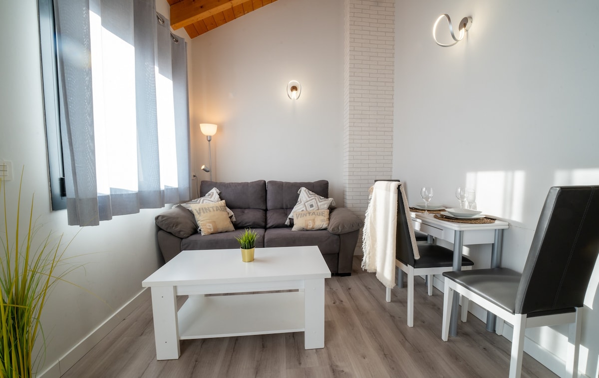 Pequeño y cómodo apartamento tipo Estudio de 24mts, perfectamente equipado con todos los elementos necesarios para descansar y disfrutar de la ciudad. Cuenta con cama de matrimonio 150cm, baño privado, Smart-TV y WIFI, cocina equipada con mesa, sillas y sillones para descansar. Posibilidad de garaje por 10€/día (bajo disponibilidad y reserva previa) Capacidad máx. 2 personas. Posibilidad de cuna y cama supletoria (solicitar información).
