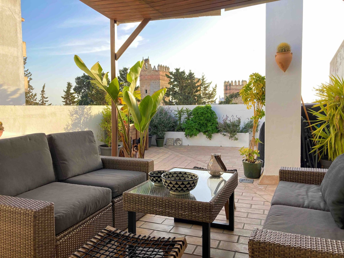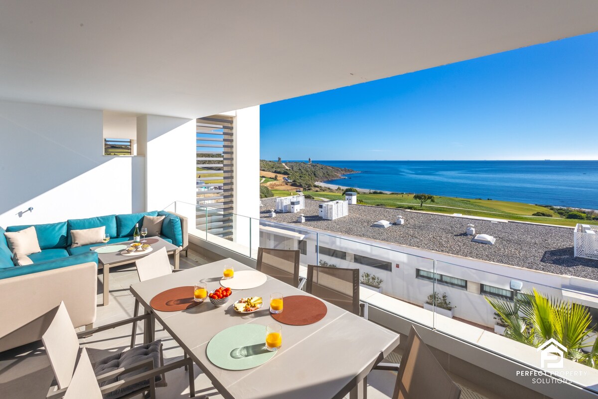 Luxury penthouse, with spacious terrace on the beachfront of Tarifa. 2 bedrooms. Private paid parking. Pool available from June to September. 1 minute from bars and restaurants. 7 minutes from the historic center. Air-conditioned. Fully equipped kitchen with dishwasher, washing machine, microwave, oven... South-facing. Terrace protected from the Levante wind with an electric awning. Crib and high chair available upon request. Penthouse with direct views of the beach. VUT/CA/00044