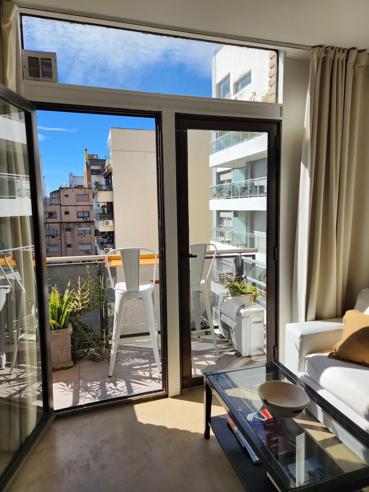 Cómodo y moderno departamento. La propiedad esta compuesta por un dormitorio con vista a verde, 1 baño completo moderno y un amplio living con cocina integrada y con salida al balcón. Impecable estado. Calefacción individual por aire y estufa en el dormitorio. Agua caliente individual. Pisos de cemento alisado. El edificio se caracteriza por ser sumamente silencioso