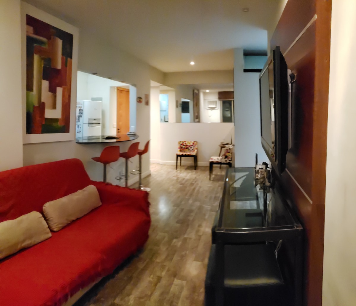 Apartamento totalmente mobiliado com ar condicionado em ambiente de sala e quarto , TV, Wi-Fi cozinha completa com fogão , geladeira, microondas, utensílios de cozinha em geral, máquina de lavar e secar roupas. Disponibilizamos roupas de cama e banho. Composto por uma suíte de casal , um banheiro social , um escritório que pode ser revertido em quarto com sofá cama para casal , sala de jantar e estar em ambiente conjugado. Disponibilizamos para as famílias com bebês um berço portátil.
