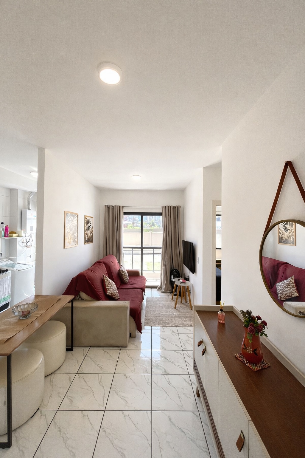 Feel the comfort and sophistication of this modern apartment in Barra Olímpica. With a balcony offering spectacular views of the Barra skyline and mountains, the space is perfect for relaxation. The master suite features premium bedding, and the living room converts into a bedroom. The open-concept kitchen with an exotic marble island adds to the elegant design. Spacious, airconditioned, and powered with highspeed internet, 2 full baths, beach essentials, 2 bikes, and more for your convenience.