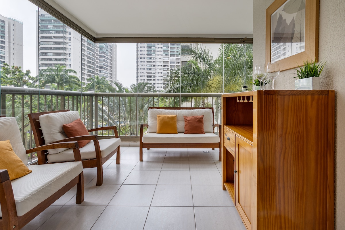 Feel the comfort and sophistication of this modern apartment in Barra Olímpica. With a balcony offering spectacular views of the Barra skyline and mountains, the space is perfect for relaxation. The master suite features premium bedding, and the living room converts into a bedroom. The open-concept kitchen with an exotic marble island adds to the elegant design. Spacious, airconditioned, and powered with highspeed internet, 2 full baths, beach essentials, 2 bikes, and more for your convenience.
