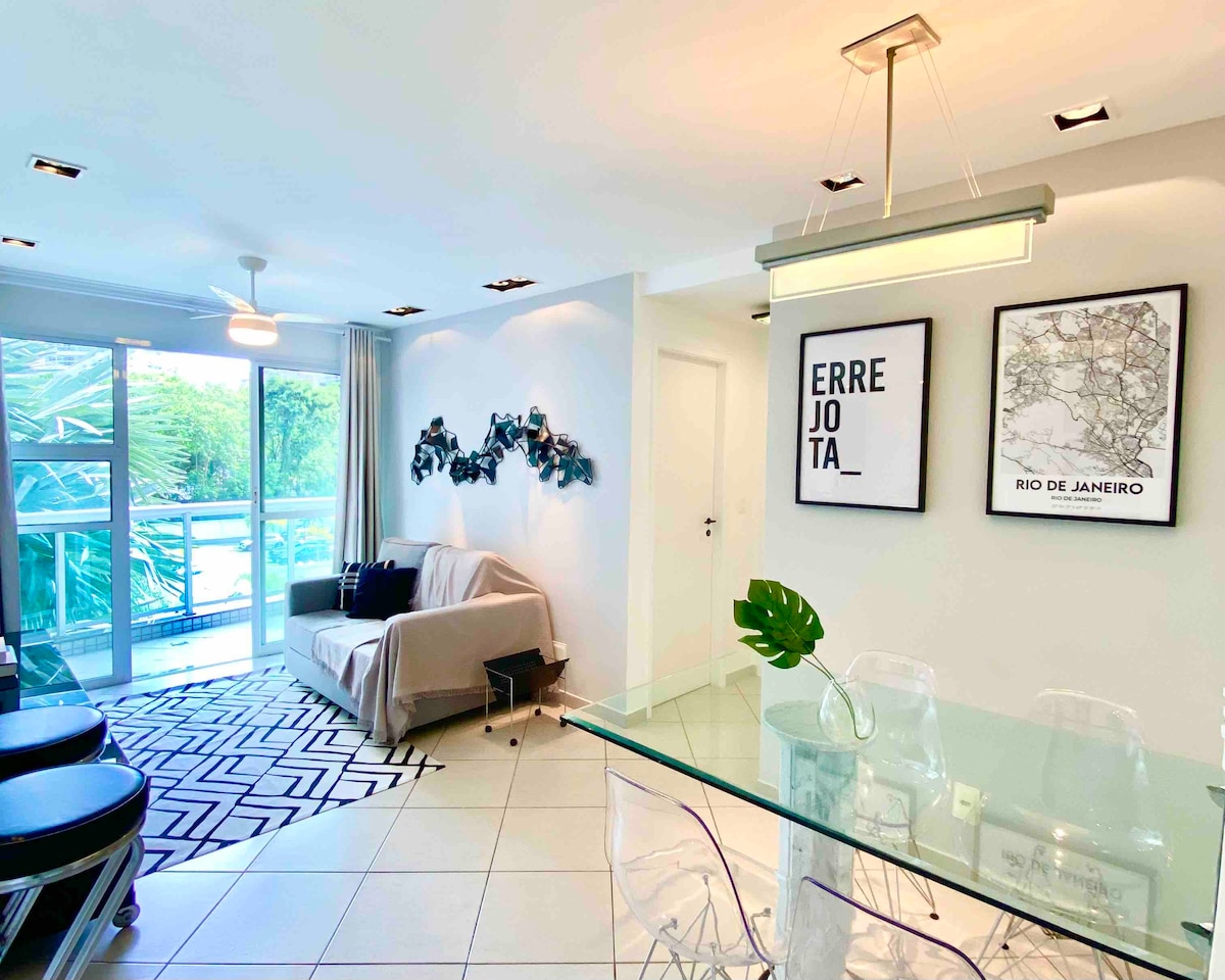 Bem-vindo ao seu refúgio na Barra/Jacarepaguá! Apto moderno e completo ideal para até 4 pessoas. Com 2 quartos (1 suíte), sala ampla, varanda e vista parcial do Parq. Olímpico, o espaço oferece Wi-Fi de alta veloc., roupa de cama/banho, cozinha com utensílios básicos. O condomínio conta com portaria e segurança 24h. Localização estratégica, próximo ao Parque Olímpico, FARMASI Arena, Riocentro, praias e principais atrações da região. Perfeito para eventos, trabalho ou lazer!