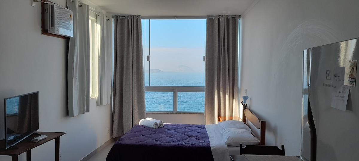 Vista panorâmica 160⁰ para o mar! Nascer do sol em frente a janela. Ótima luminosidade natural. Ventilada. Cortina blackout. Fácil acesso aos transportes. Parte baixa da comunidade do Vidigal. Está a 8 minutos a pé da praia do Vidigal, e de carro, a 5 e 8 minutos das praias do Leblon e Ipanema. Ciclovia/Av. Niemeyer em frente da casa. Cama casal, colchão solteiro, rede. Cozinha equipada: eletrodomésticos e utensílios para cozinhar. Ar condicionado. Smart TV check-in: a partir 14h check-out: 11h
