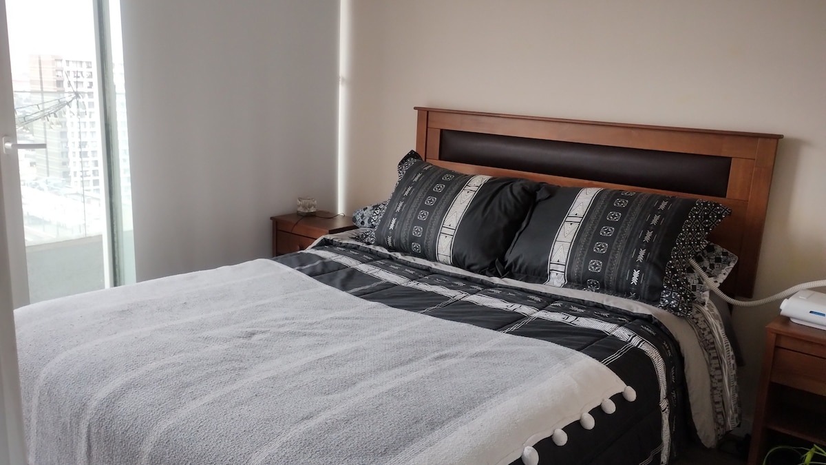 Moderno departamento con equipamiento de alto nivel y aire acondicionado para tu máxima comodidad. Disfruta de acceso autónomo y excelente conectividad, a sólo 20 minutos del aeropuerto en taxi y a 18 minutos caminando de la estación de metro Quinta Normal, o 5 minutos en taxi. Ubicado en un tranquilo barrio, ideal para el descanso, a pocos pasos de supermercados, parques, hospitales y bancos. Los principales puntos de interés turístico están cerca y son fácilmente accesibles en Uber o Metro.