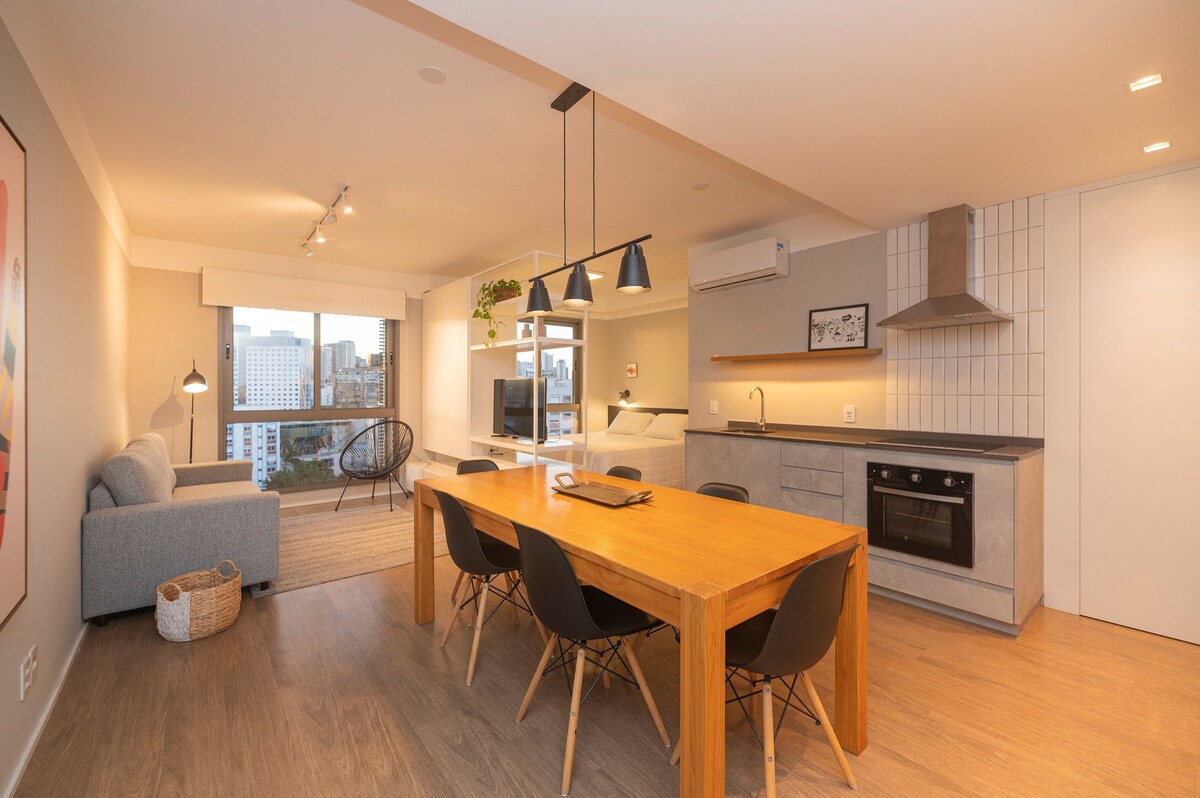 Descubra o charme e conforto deste studio no animado bairro Cidade Baixa. O espaço é integrado, moderno e acolhedor, acomoda até 3 pessoas, com cozinha equipada e comodidades como ar-condicionado, Internet 350mb e TV Smart. Conte com portaria 24h e self check-in. Próximo a diversos pontos de interesse: A pé: Pq. da Redenção: 10min UFRGS: 10min Hosp. Santa Casa: 12min De carro/Uber: Aeroporto Salgado Filho: 20min Orla do Guaíba: 5min PUC: 14min Rodoviária: 10min Barra Shopping Sul: 15min