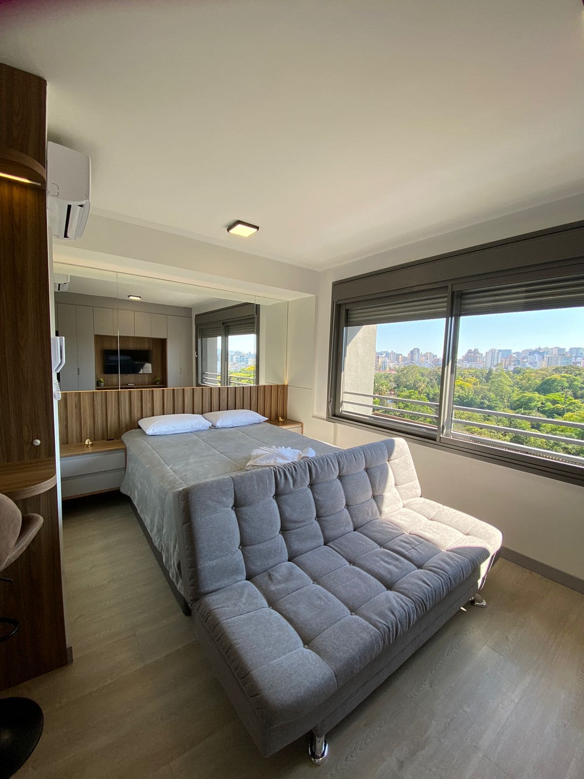 Studio com vista parque e automação/Alexa. Garagem fechada, cozinha com itens básicos e roupa de cama/banho. Localizado em área central, rooftop com piscina, academia e coworking. Parque da Redenção à poucos metros de distância, Feira Orgânica e Brique nos finais de semana, Refúgio do Lago gastronomia e shows no Auditório Araújo Vianna. Próximo à bares, restaurantes e vida noturna dos Bairros Cidade Baixa/Bom Fim. Fácil acesso à Orla do Guaíba, universidades, hospitais e demais bairros.