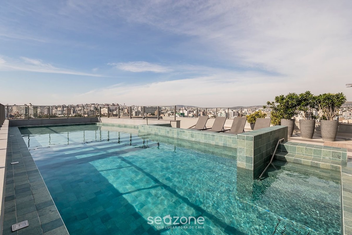 Novo e alto padrão no centro de Porto Alegre, o JP Redenção tem um terraço com piscina e mirante com vista sensacional da Redenção, uma experiência inesquecível. Academia a sua disposição, lavanderia sob demanda. Quarto versátil com cama de casal Queen, Smart TV, WIFI, ar-condicionado, tomadas USB, banheiro, cozinha/sala, para estadas curtas ou longas com conforto e comodidades. De frente para a Redenção, UFRGS e Santa Casa. Estacionamento rotativo no prédio.