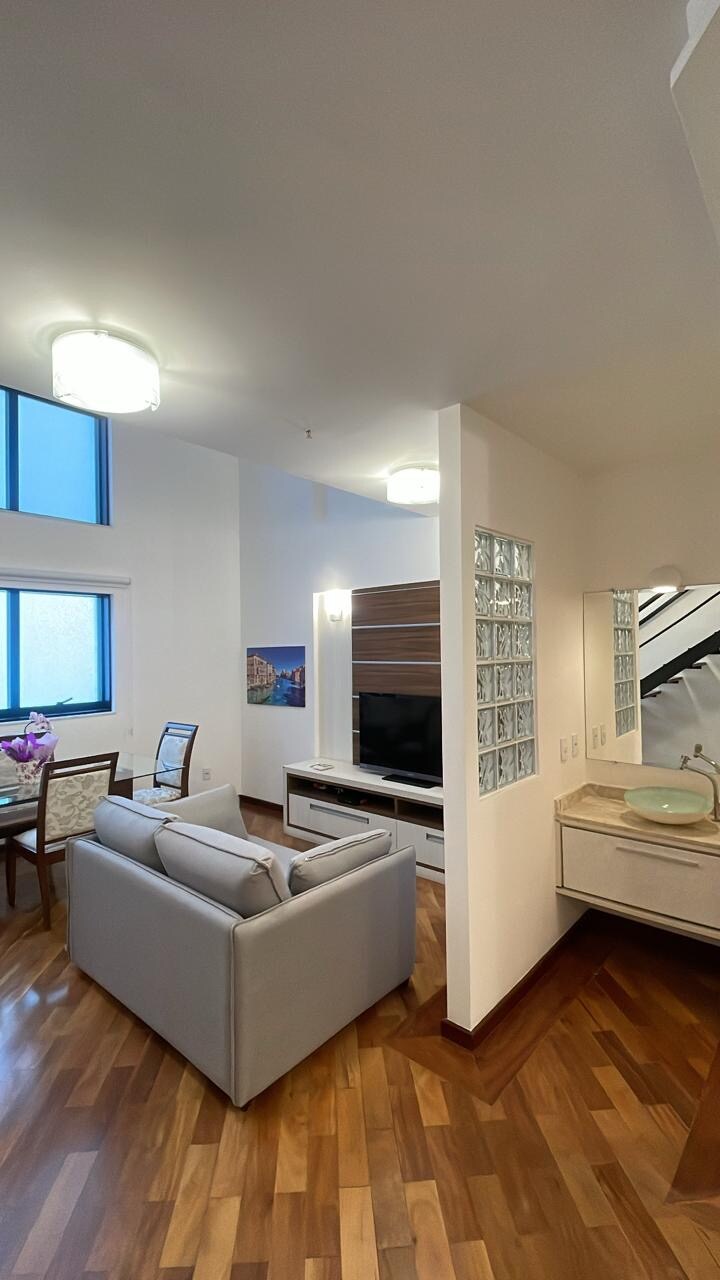 Característica do Flat: .piso frio ou laminado Madeira .geladeira com freezer ( não frigobar) .fechadura eletrônica padrão hotel ( registro das últimas 60 entradas e saída ) .Smart tv na sala e no quarto ..condicionado split e inverter novo (muito silencioso) .cofre Eletronico .secador de cabelo .cozinha equipada ( essencial) . Roteador de internet no flat Estacionamento,Lavanderia,Piscina,Room Service,Sala de Ginástica,Apartamento com cozinha,quarto , sala e varanda
