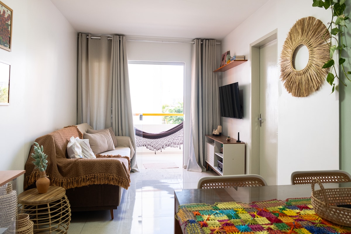 Apartamento moderno, novo, aconchegante, funcional e totalmente equipado para proporcionar lazer e conveniência, pensado nos mínimos detalhes para garantir conforto, comodidade e satisfação aos meus hóspedes. Totalmente nascente, vista mar espetacular da sala e da suíte, garagem privativa, piscina, elevador de acessibilidade, área de lazer e uma localização excelente, próximo do parque shopping (5 min) , UNIT, restaurantes, supermercados, academias.... Receber bem é o que mais amamos fazer!