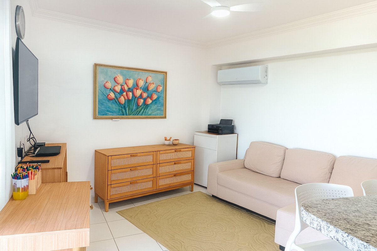 Quarto e sala reformado, aconchegante e bem equipado, a 100m da praia e a cerca de 500m do Parque Shopping. Ideal para quem quer conforto e praticidade em Maceió. No apartamento: • Ar-condicionado • Wi-Fi • Smart TV Você fica pertinho do mar para caminhar e curtir a orla e também a poucos minutos a pé de shopping, supermercado e farmácia. Se a ideia é descansar, trabalhar remoto ou aproveitar a cidade com mais liberdade, esse apê é pra você.