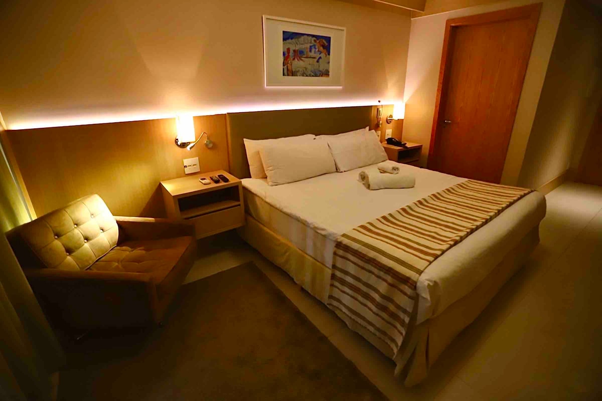 Experimente o Luxo e o Conforto com localização central privilegiada que oferece Garvey Park Hotel! A poucos passos do Shopping Conjunto Nacional Mall e a menos de 2 km do Complexo Cultural da República. É o ponto de partida ideal para explorar a cidade. Quarto novo, moderno e confortável, com comodidades premium. Vista da região central de Brasília. Descubra o melhor de Brasília com estilo e conforto!